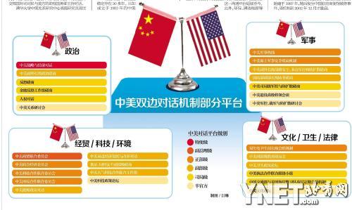目前,中美90多个对话沟通机制中,政治、军事、经贸及科技属于两国关系的传统议题,环境、法律、全球事务为新议题。