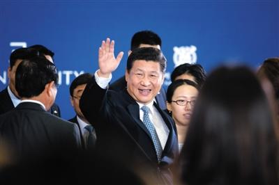 4日,首尔大学,习近平在演讲后向听众挥手致意。