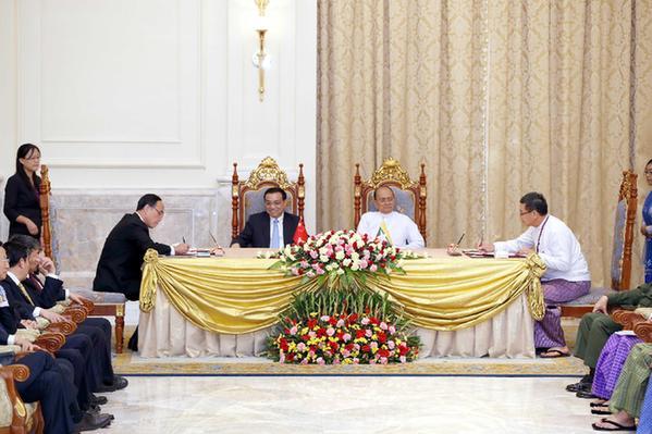 11月14日,李克强总理与缅甸总统吴登盛见证两国签署多份协议。