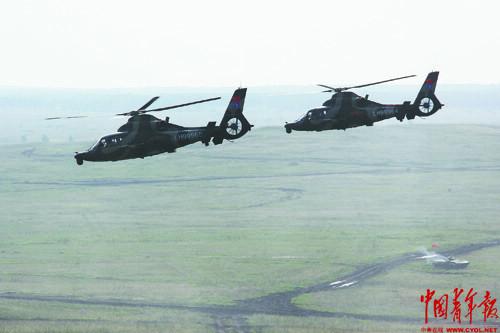 密集的枪响渐渐被隆隆的炮声掩盖。空中,直-9武装直升机和米-24直升机,对敌装甲目标实施精确火力打击。歼轰-7A和苏-24呼啸着将炸弹准确倾泻到靶标上,脚下的大地在震颤,营地周边烟柱四起。