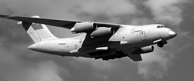 在试飞中,涂装了深灰色外衣的运-20略带萌态地轻松辗转,进行多次较大角度盘旋、转弯,并进行了一次低速平飞。