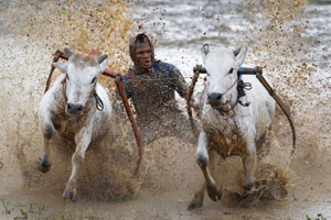 印尼泥水稻田公牛比赛