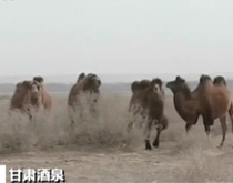 罕见 野骆驼群现沙漠边缘