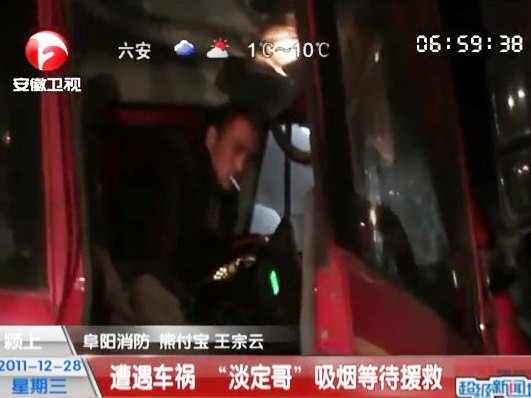 • 遭遇车祸 “淡定哥”吸烟等待救援