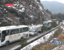 • 广西北部多条公路大面积结冰 车辆艰难前行