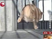 肥猫咪穿越栅栏 千辛万苦挤出来
