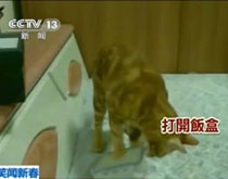 • 实拍:猫咪开饭盒 自己动足取食