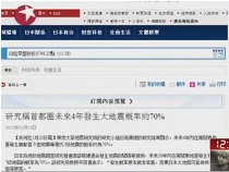 研究称日本首都圈未来4年大地震概率约70%