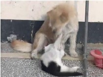 猫狗一家亲 猫认狗做“奶妈”