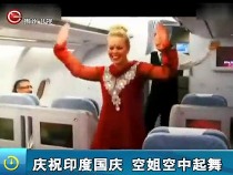 庆祝印度国庆 空姐身着艳服空中起舞