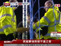 英超球迷冲进场内用手铐把自己锁在球门上