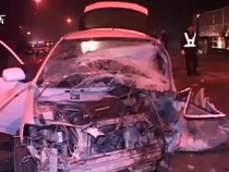 轿车撞向大货车 一家四口很受伤
