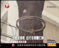 • 创意篮球框 自行车钢圈钉树上