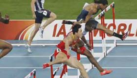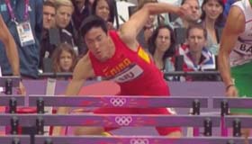 刘翔跨越第一栏摔倒瞬间慢镜头