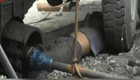 【解说】昆明市五华区农林局的工作人员第一时间赶到了现场,对被困狗狗进行现场临床诊治。