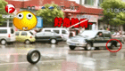 轿车正在路上跑 车轮突然跑掉了