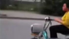 实拍:撒把骑电瓶车 低头玩手机