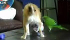 霸气小鹦鹉敢跟狗狗抢食
