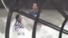 男子发现鸭子被冻湖面 跳湖破冰救援