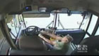 美校车司机摔倒 双手紧抓方向盘
