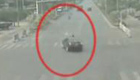 实拍轿车加速闯黄灯撞飞电动车