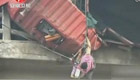 货车侧翻 司机被甩出命悬高桥