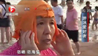 为防海蜇 群众戴头套游泳