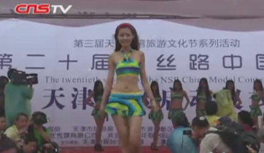"新丝路"天津赛区佳丽雨中走秀