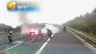 400万豪车撞护栏起火烧成废铁