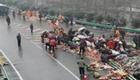 实拍卡车侧翻奶牛滚满地后淡定起身
