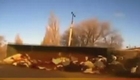 实拍卡车侧翻奶牛滚满地后淡定起身