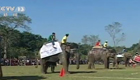 实拍尼泊尔举行大象赛跑比赛