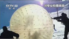实拍游客玩滑雪太空球滚入悬崖