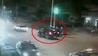 监拍惊险一刻:面包车自己溜过马路