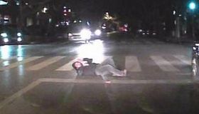 拍客:男子睡马路中间 车辆绕行