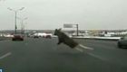 实拍:俄罗斯驼鹿冲上公路险丧命