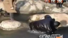 男子发现鸭子被冻湖面 跳湖破冰救援