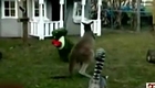 实拍愤怒袋鼠暴打布娃娃
