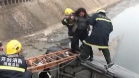 男子发现鸭子被冻湖面 跳湖破冰救援