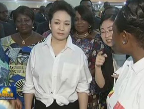 彭丽媛参观刚果妇女手工艺品展