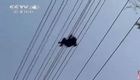 实拍:醉酒男高压线上秀“杂耍”