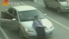 监拍女司机强冲卡 民警双腿被压