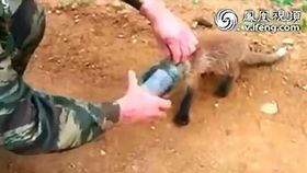 狐狸觅食头部被卡玻璃瓶中 向路人求助