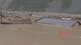 四川暴雨汶川堰塞湖淹没民房