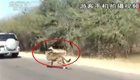 实拍黑斑羚遭遇印度豹"一跃"逃生