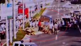 女子带小孩骑车过马路被卷入货车底
