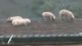 汶川暴雨“猪坚强”洪水中房顶逃生
