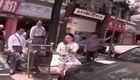 实拍女子过马路看手机被公交撞飞