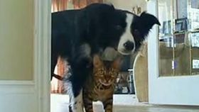 狗教练陪伴最胖猫咪 训练成功瘦身