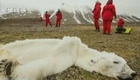 海冰融化不能长时间游泳捕食 北极熊瘦成毛毯